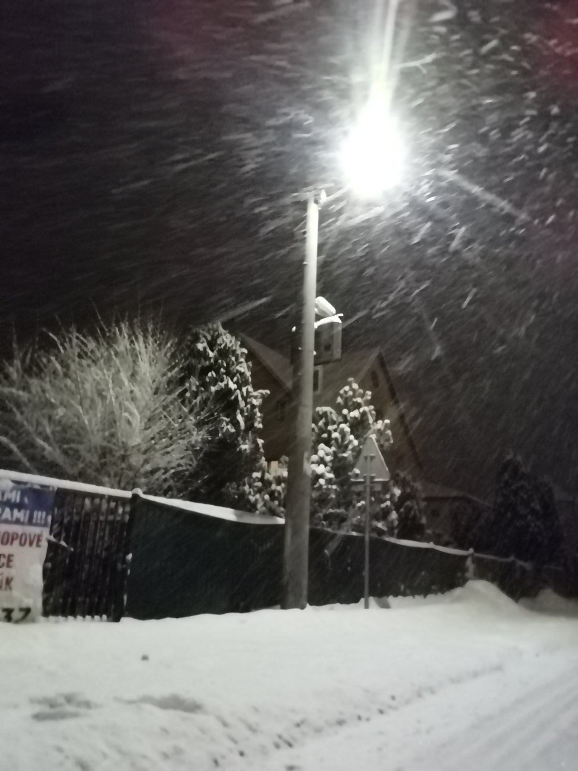 -4°C, Silná až mírná sněhová přeháňka, Sníh: -. Zatím dnešní nejsilnější sněžení! Zítra může nasněžit mezi 10-15.cm sněhu!!!!!
