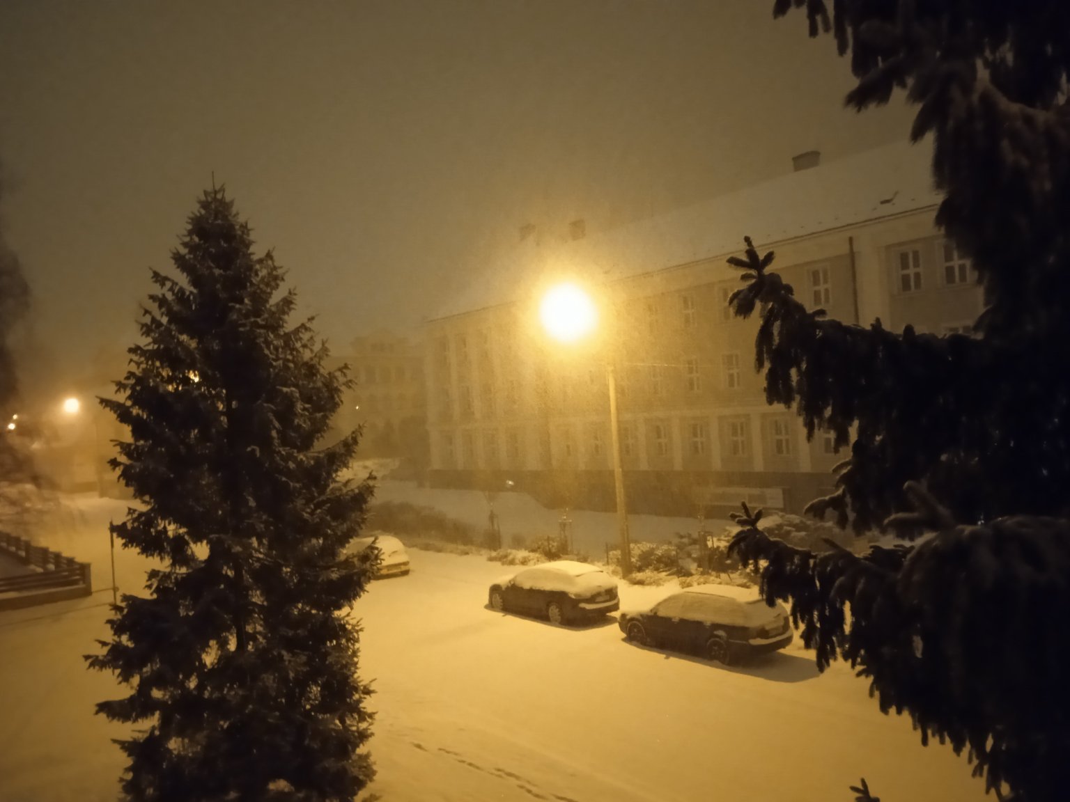 Zamračené, mierne sneženie