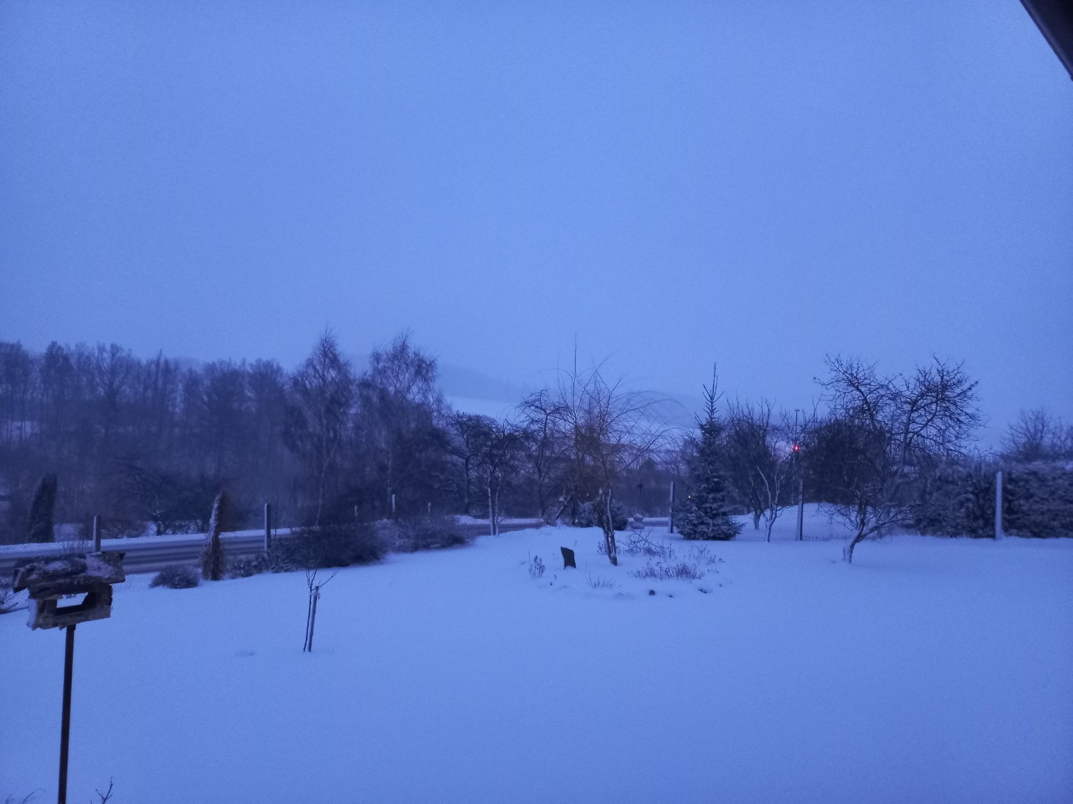 Aktuálně převažuje většinou zataženo a trvale slabě sněží a fouká většinou slabý občas až mírný vítr