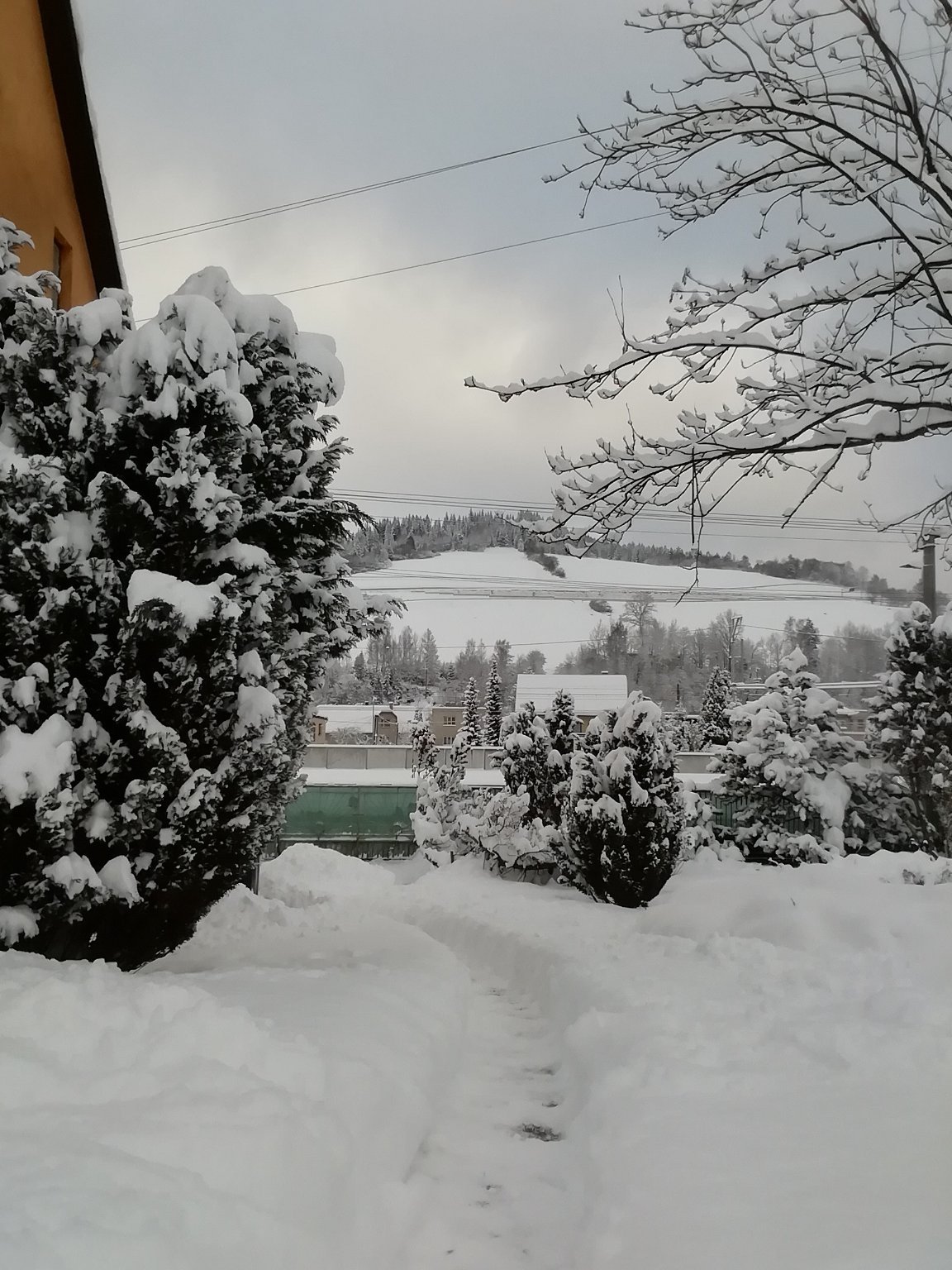 -3,2°C, Oblačno až zataženo, Sníh: 18.cm. Zatím nejvyšší sněhová pokrývka této zimy!!!!! (Ňunu: U vás je až 31.cm sněhu!!!???). Jo stále ještě může něco připadnout!