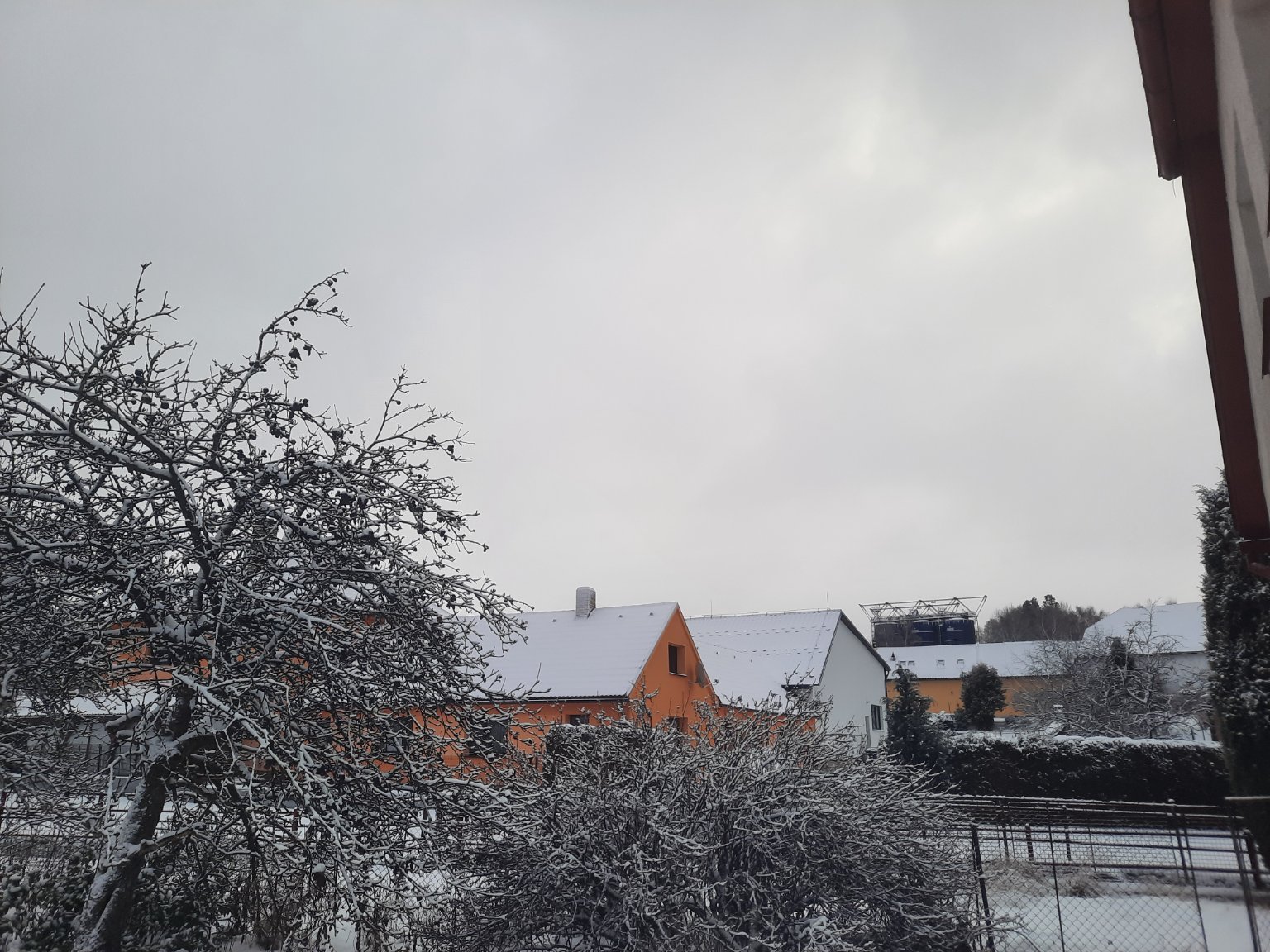 Je skoro zataženo a vane mírný vítr. V noci spadlo několik cm sněhu.