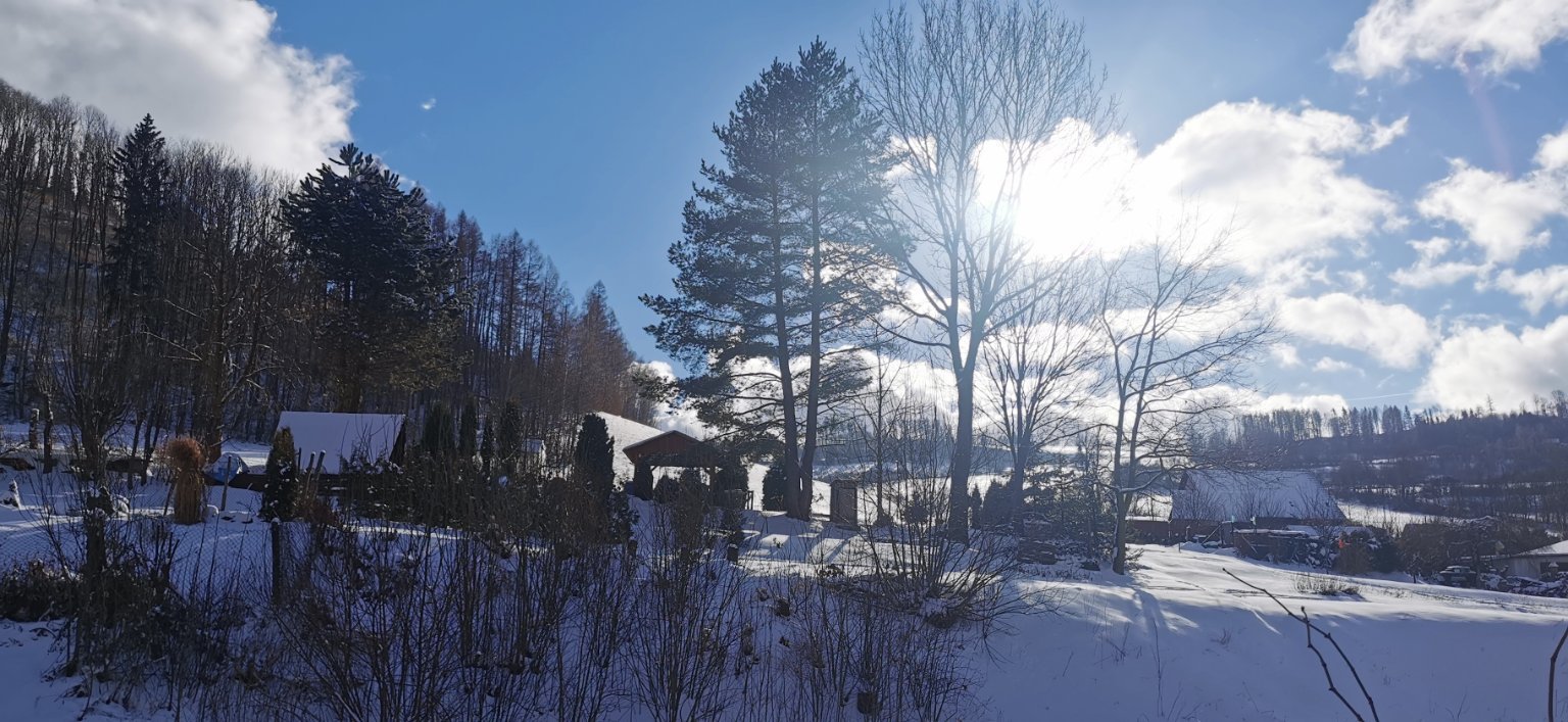 Zamračené, slabé sneženie