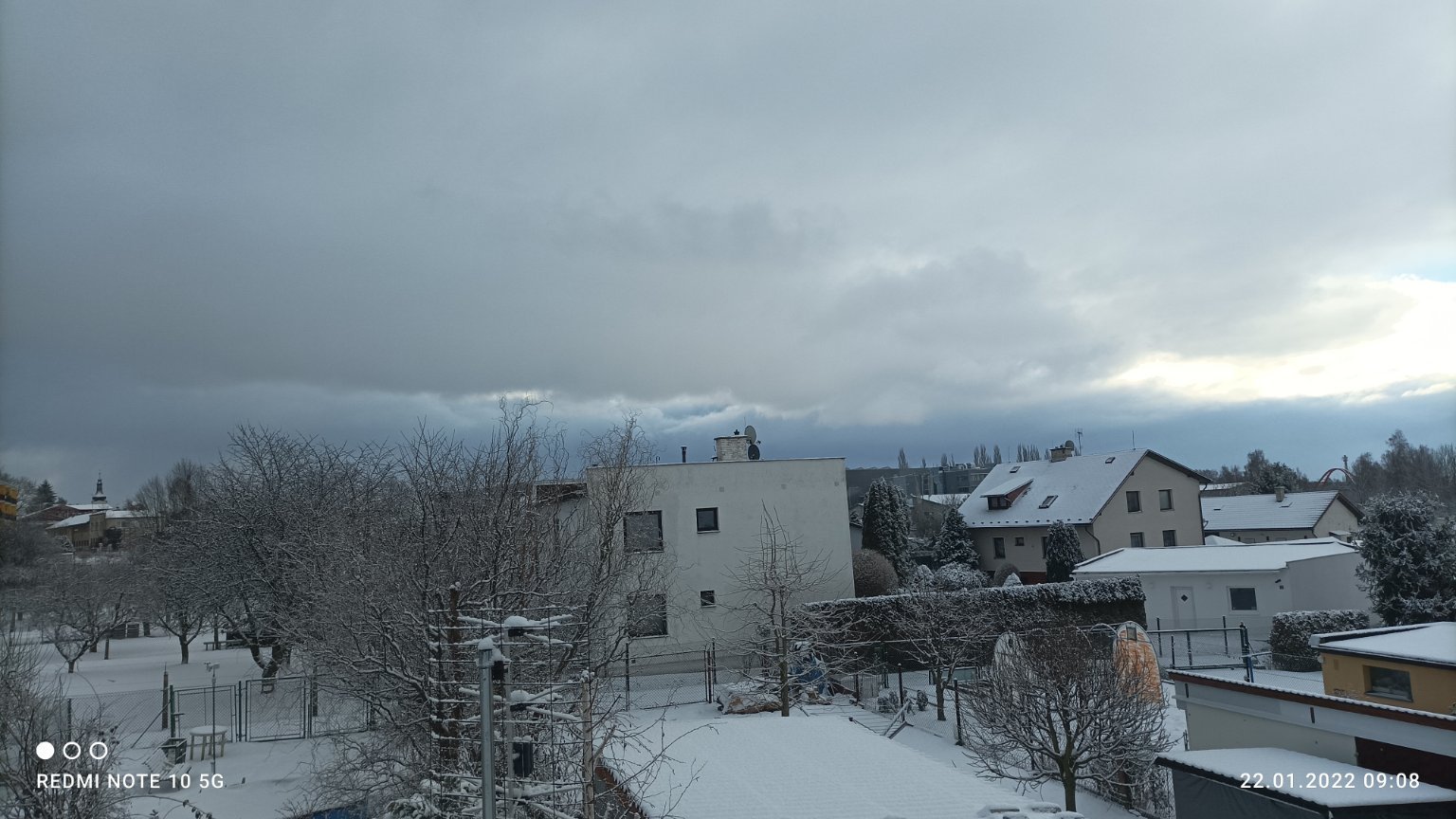 2022 01 22 v 09:37:20 polojasno +1° asi tak 4 cm sněhu