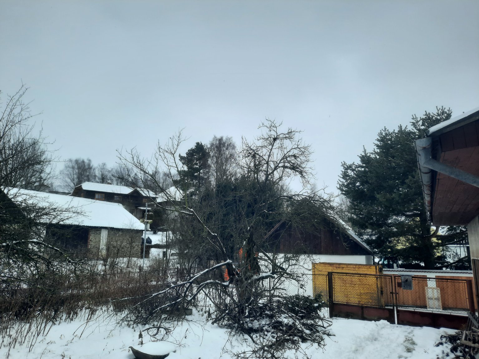 Zamračené, slabé sneženie