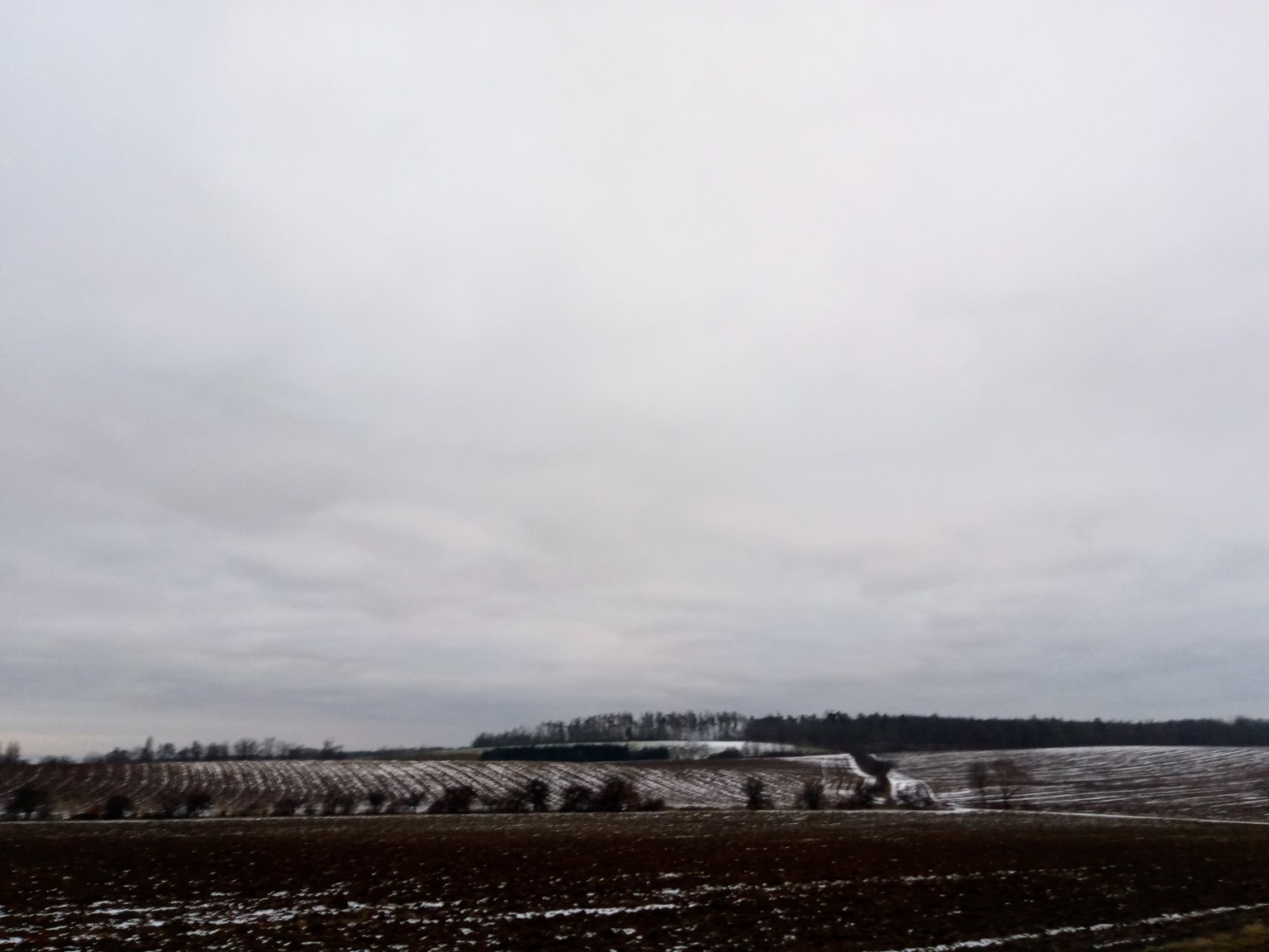 zataženo slabé sněžení