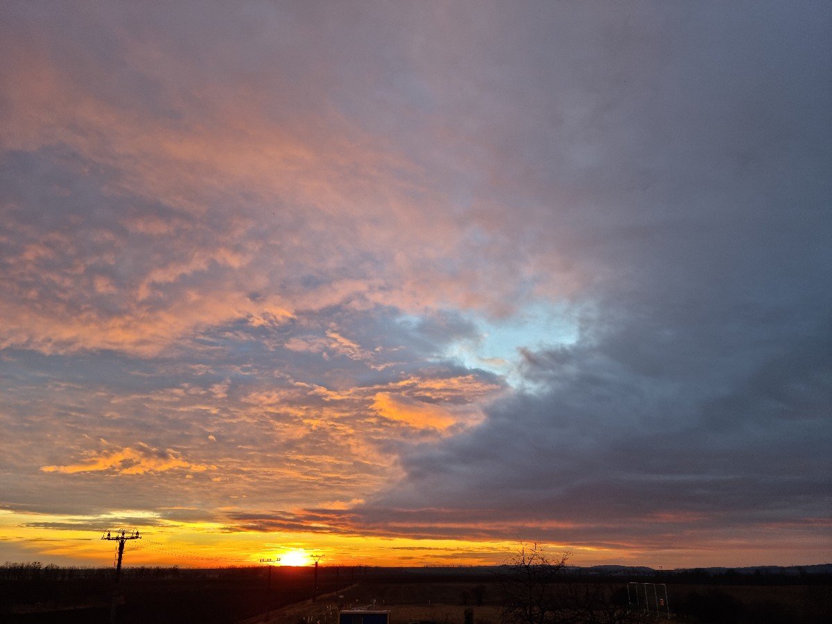 Zataženo, silný západní nárazový vítr, roztrhaná střední a vysoká oblačnost od západu nástup souvislé , mrholení déšť se sněhem, dohlednost 4 km