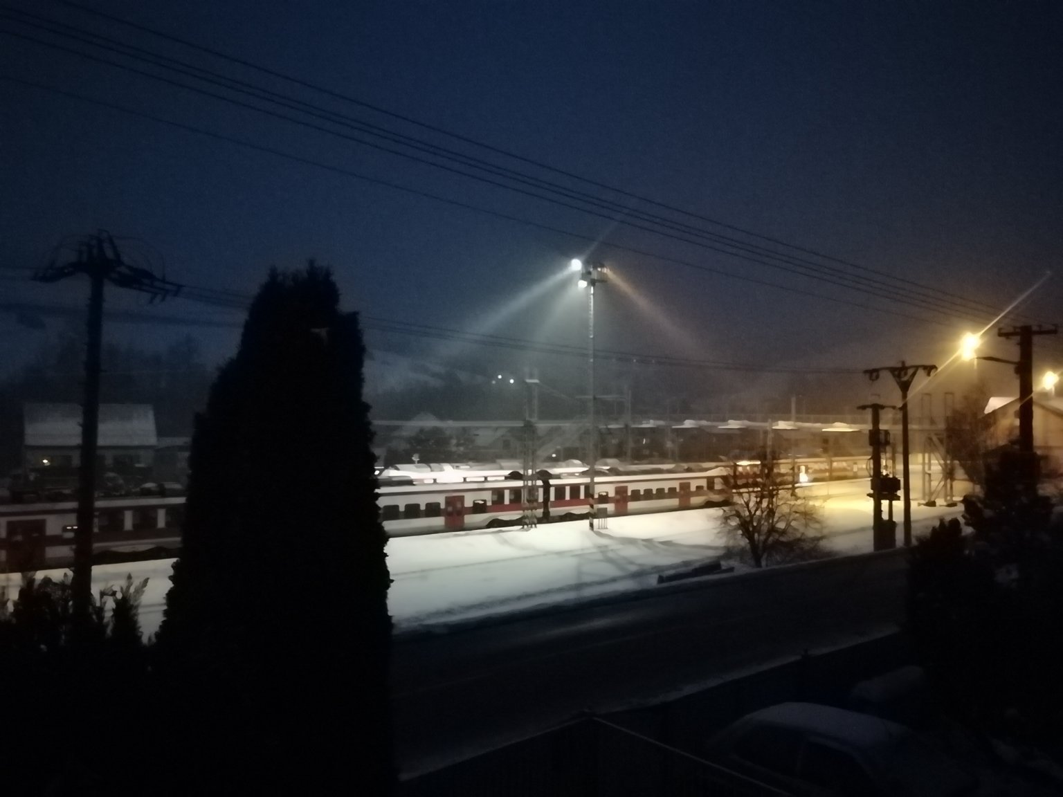 Aktuálně převažuje většinou zataženo a přechodně mírně až silně sněží a fouká většinou vánek