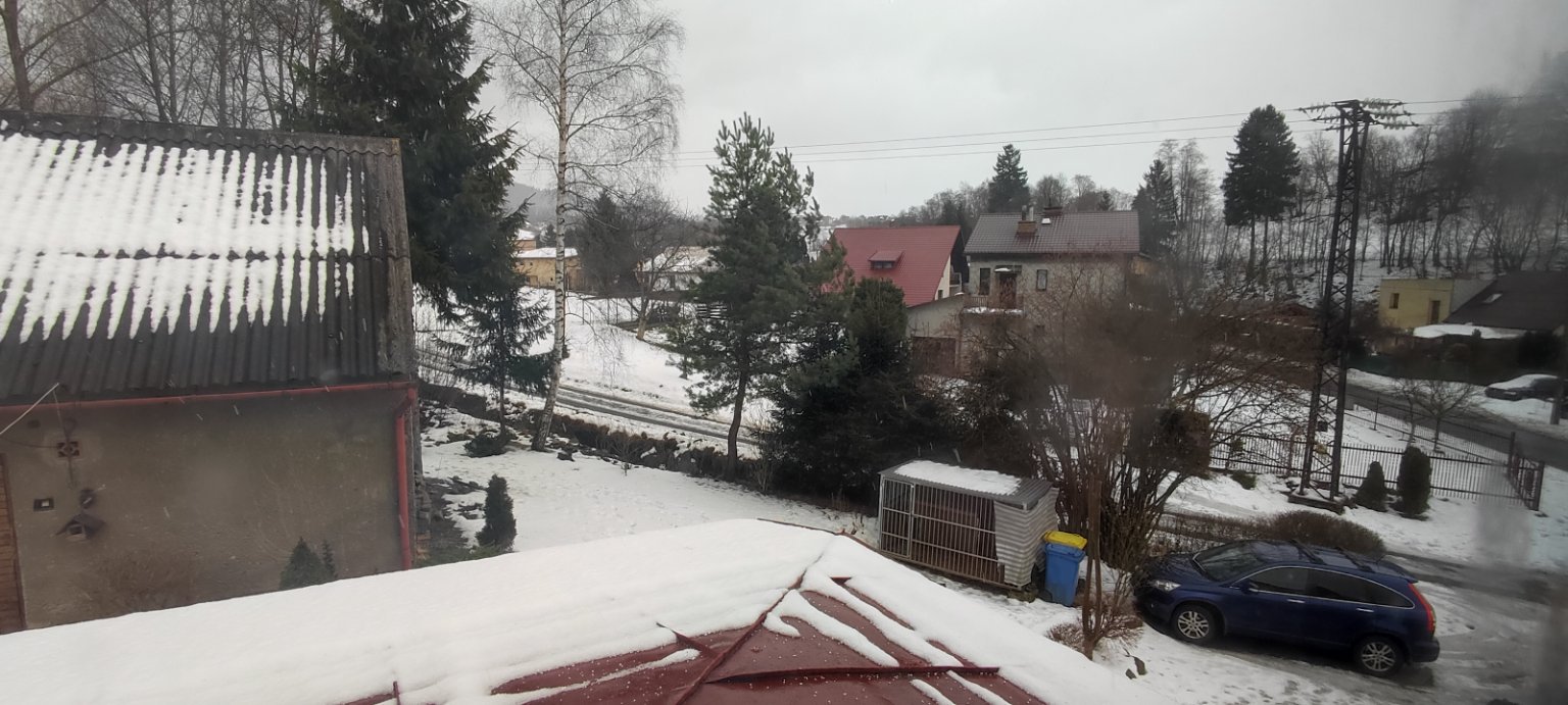 Je skoro zataženo a propadávají sem tam krupky. Vítr vane čerstvý s nárazy ale o vichřici se u nás zdaleka nejedná.