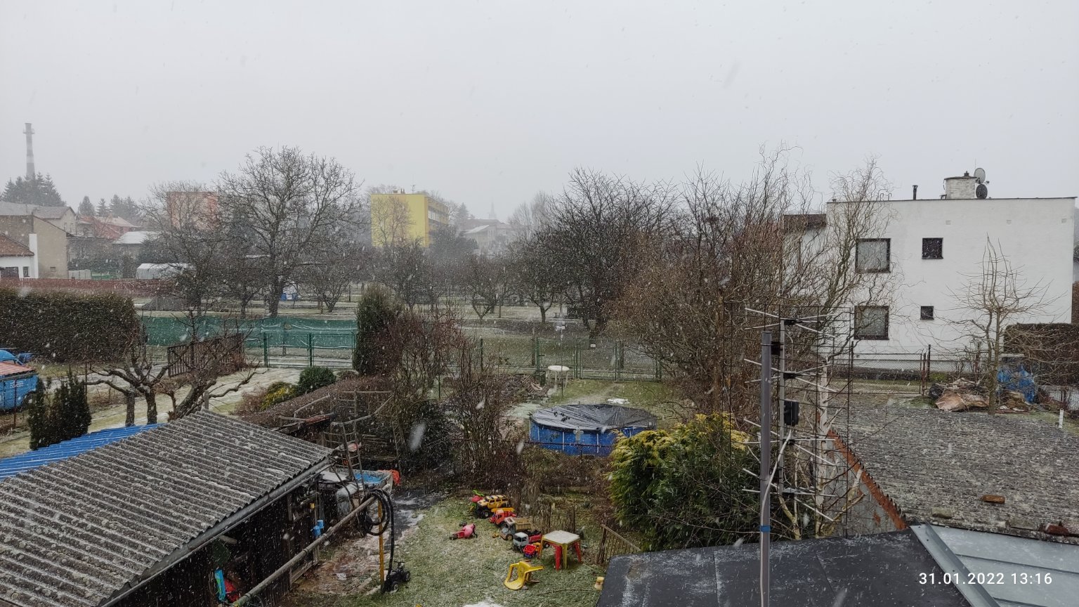 Aktuálně převažuje většinou zataženo a převážně slabě trvale sněží a fouká většinou slabý vítr, sníh přibyl hlavně na starém sněhu třeba na střechách to vůbec nedrží