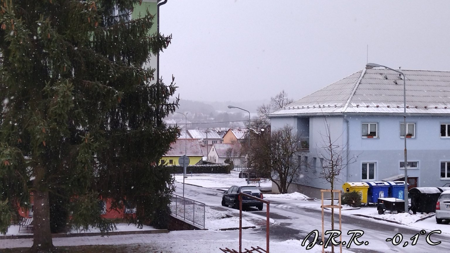 Opravdu hustě sněží, snaží se držet i na chodnících a silnicích