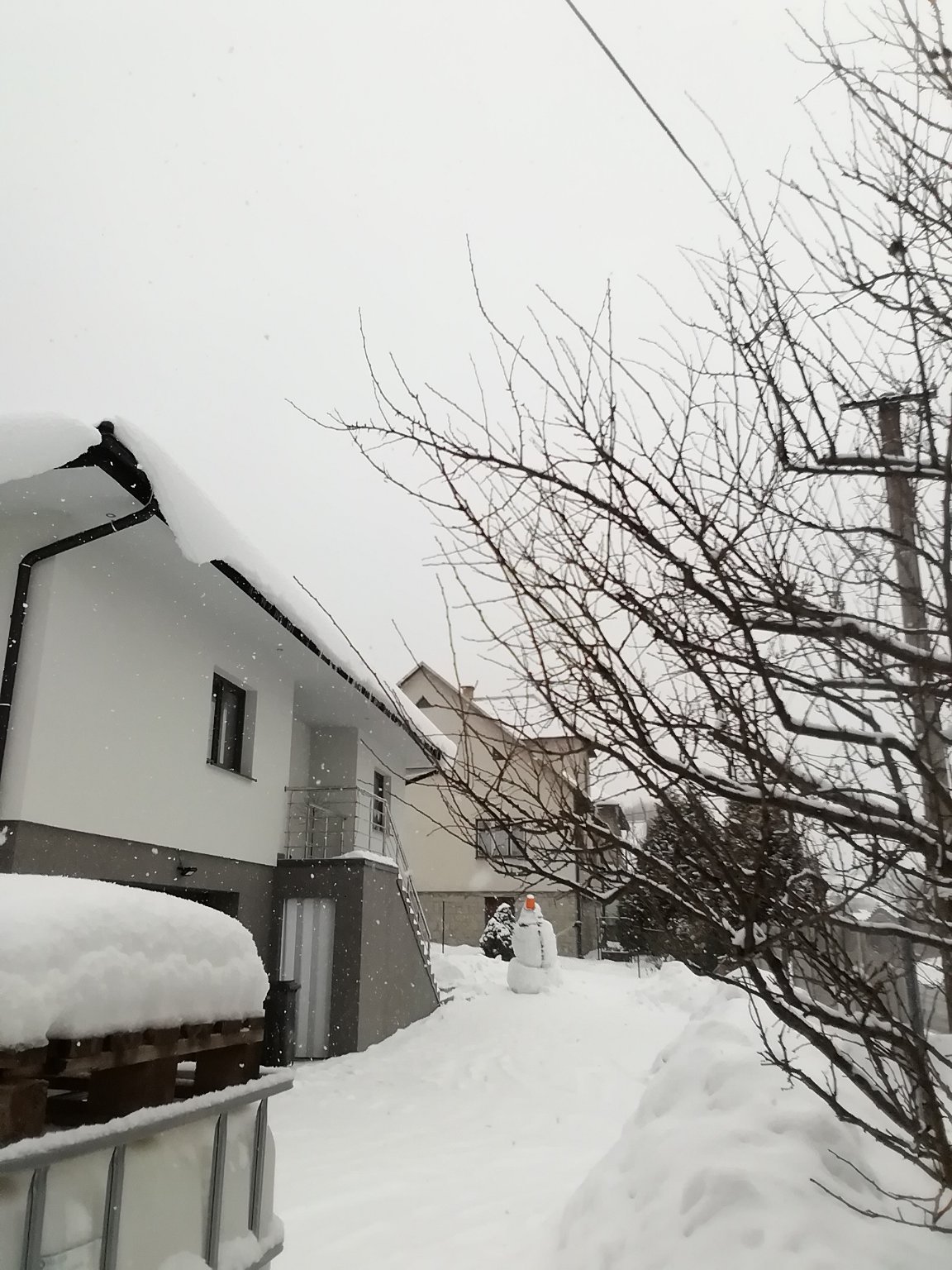 -°C, Mírná až slabě sněžení, Sníh: -. Teď opravdu začalo dost sněžit!