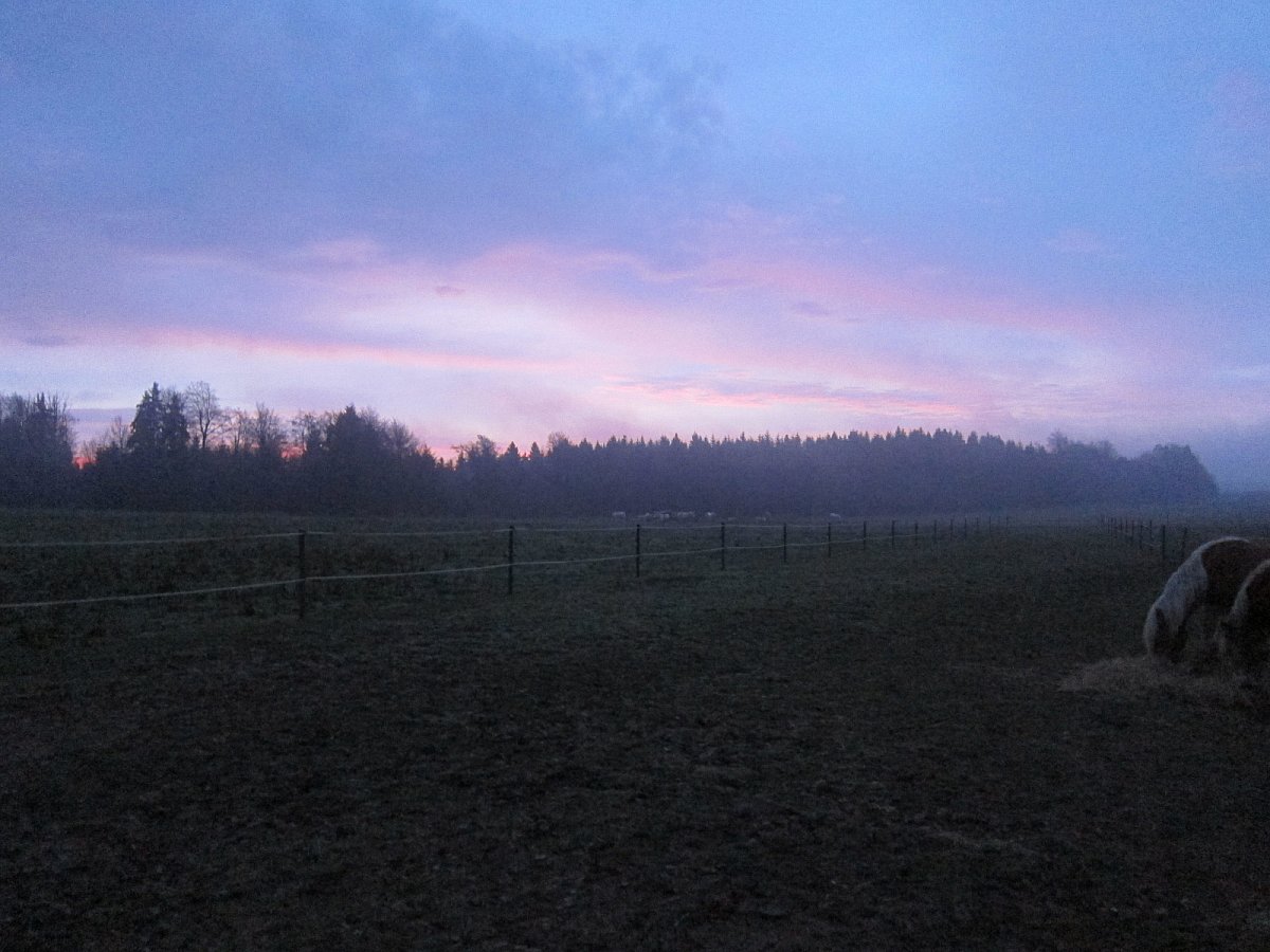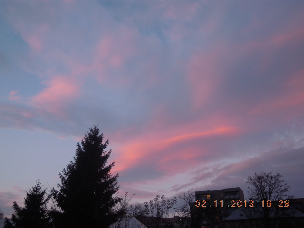 Srážky dopoledne 2,5 mm. Foto dnešní západ slunce.