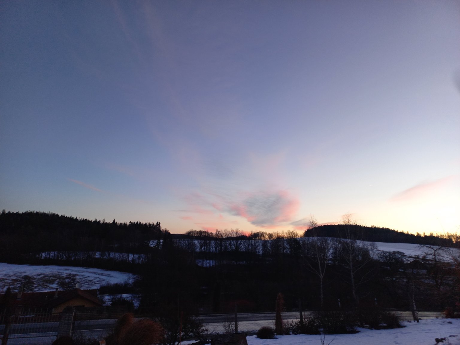 V dáli zasněžený Javorovy vrch Beskydy 1031 m.n.m