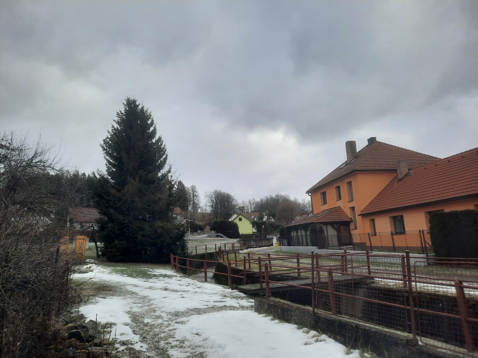 Je oblačno a popadává sníh. Vítr vane čerstvý s nárazy.