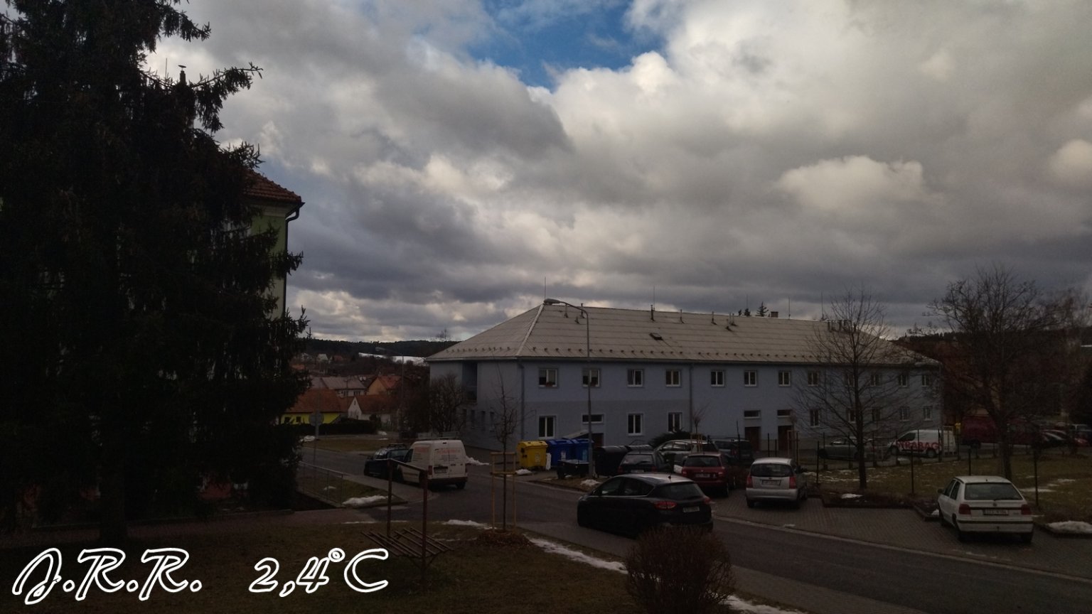 sněhové přeháňky, proměnlivá oblačnost, v nárazech čerstvý vítr, 2°C
