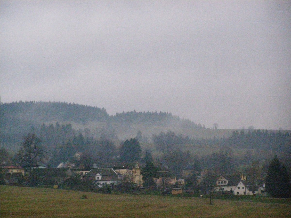 Zataženo,mlha tlak 1001 hPa /vlhkost 85 % .