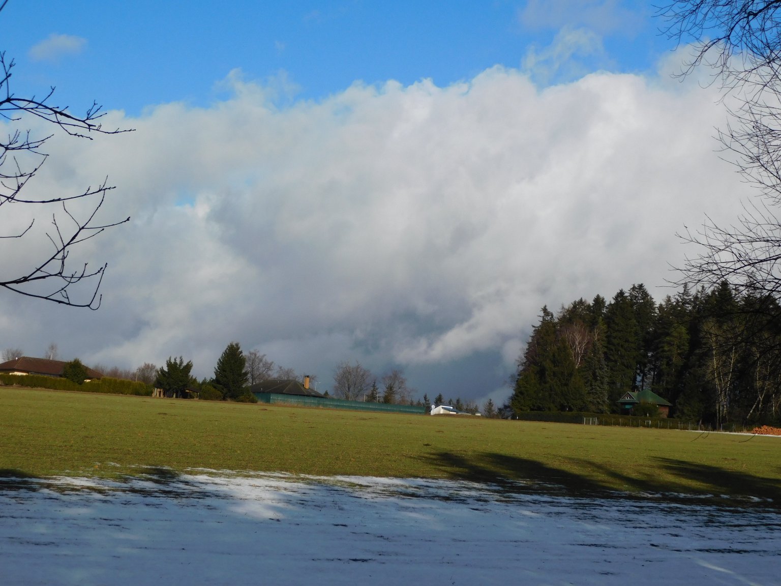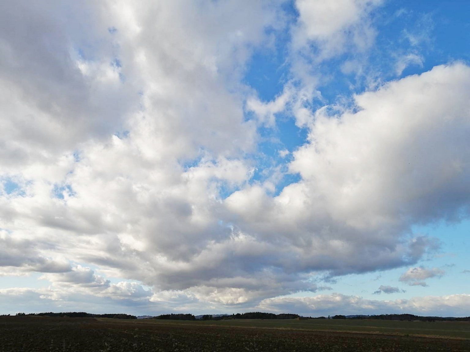 Zataženo, rychle se měnící oblačnost středního pásma, silný SZ vítr v nárazech, od západu nastupují přeháňky
