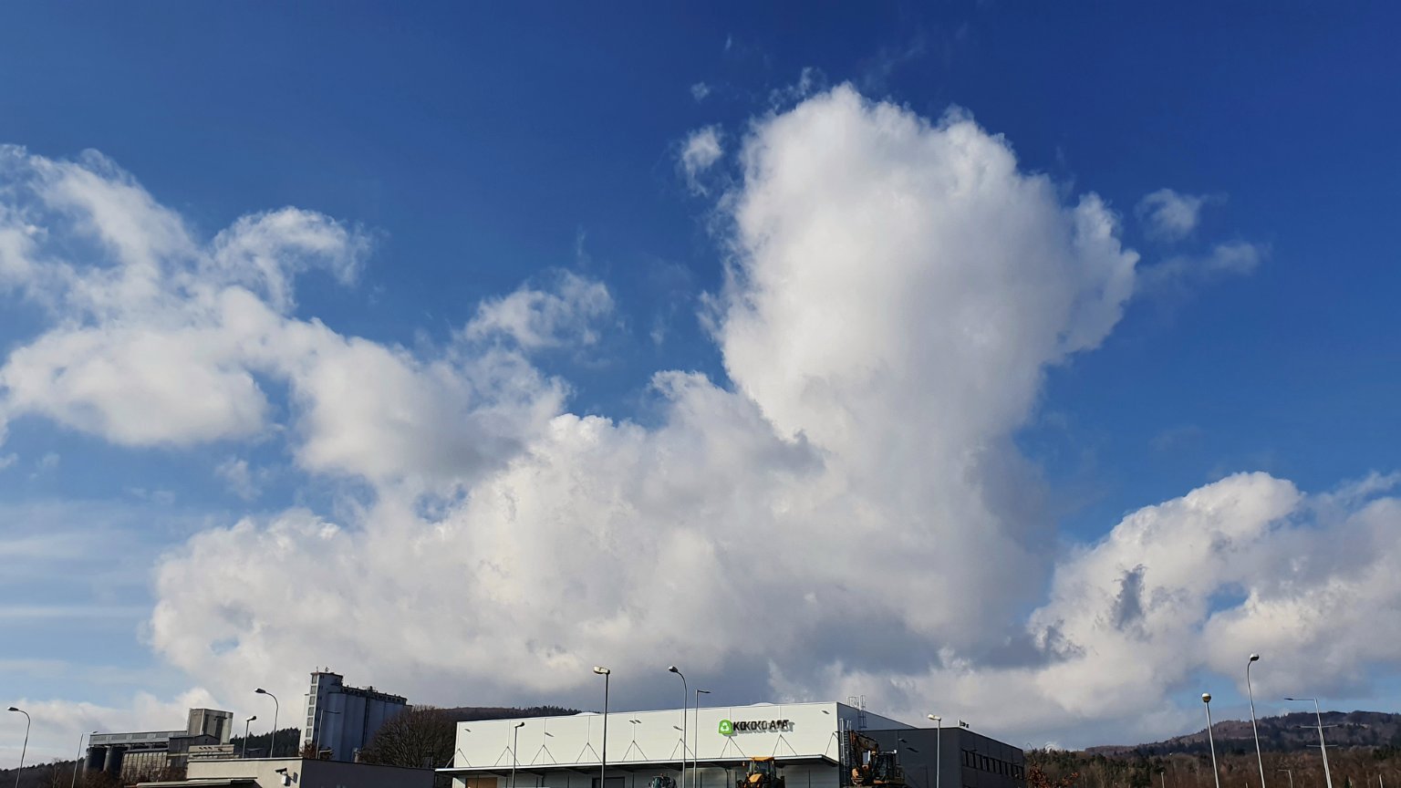 Zataženo, mírný SZ nárazový vítr, protrhaná oblačnost,