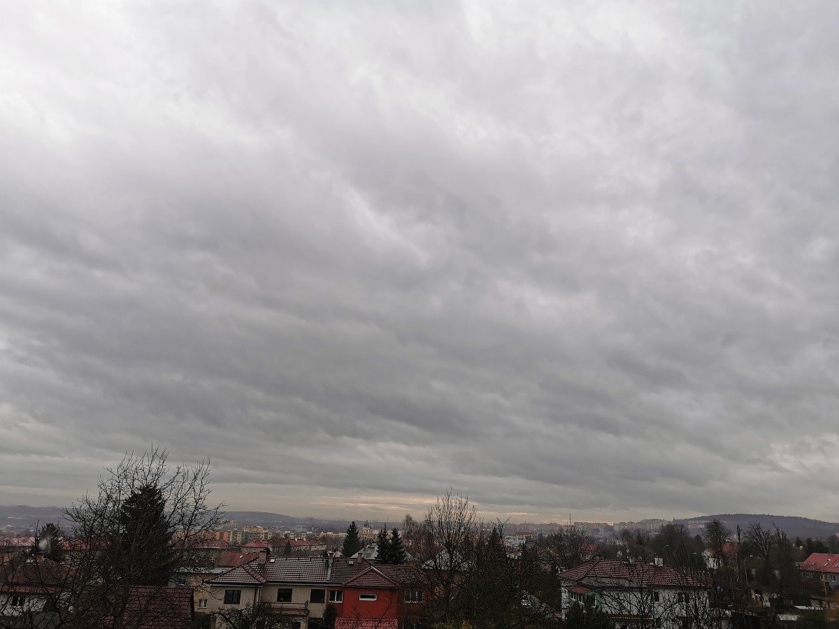 Klidno,tlak 1007 hPa,vlhkost 90%
