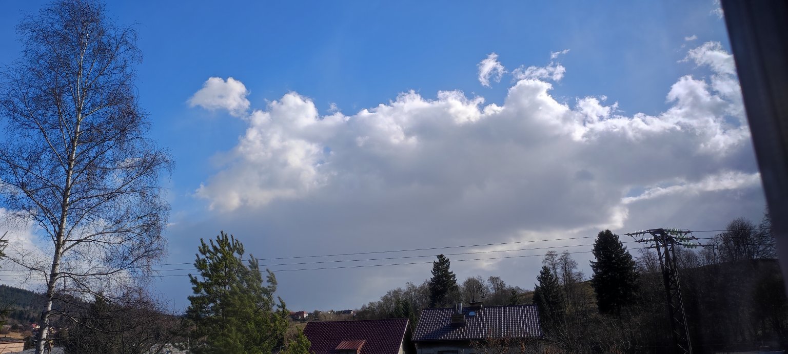 6,7°C, Polojasno, Sníh: 0.cm. Srážkové pruhy z čisté oblohy, možná to i dopadne na povrch!