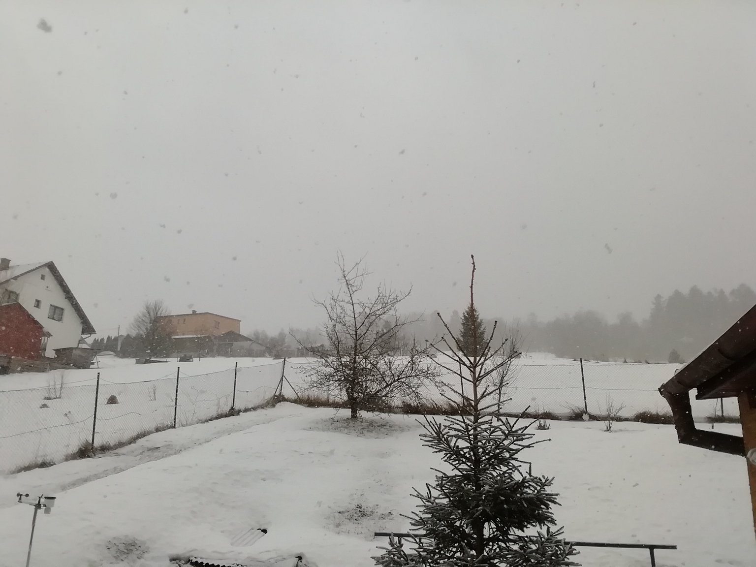 Aktuálně převažuje většinou zataženo a slabounký déšť se sněhem trochu posněžilo v noci a fouká většinou slabý přechodně až mírný vítr