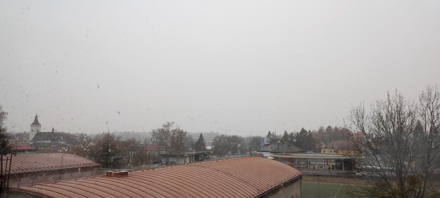 odpoledne jsou přeháňky už sněhové a občas i silnější, při přeháňce čerstvý vítr, 2°C