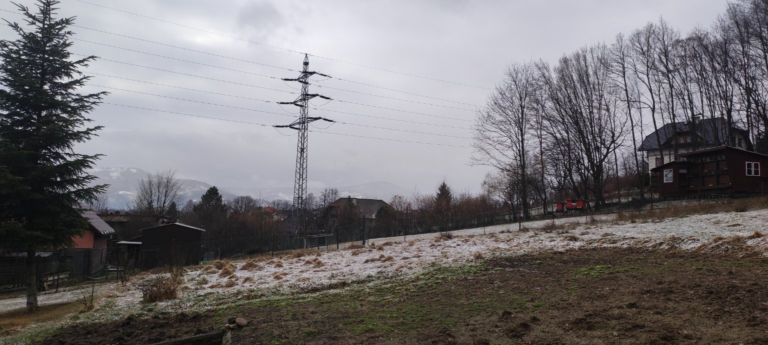 1,5°C, Velmi slabé až zanedbatelne sněžení, Sníh: nesouvisly. Poprašek už odtává... Nízká oblačnost nad Jablunkovem.