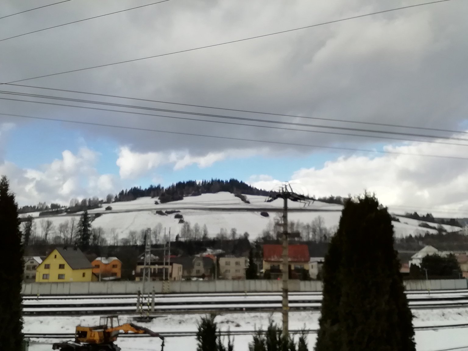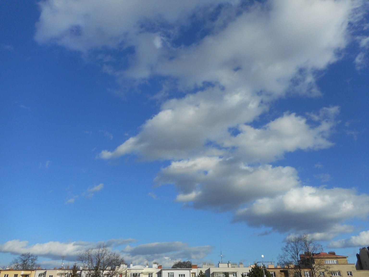 Vlhkost 43%, vítr se utišil úplně. Nad obcí dochází k výrazné kondenzaci vody do kup. Na Slovensku si jeden kumulus razí cestu do výšky.