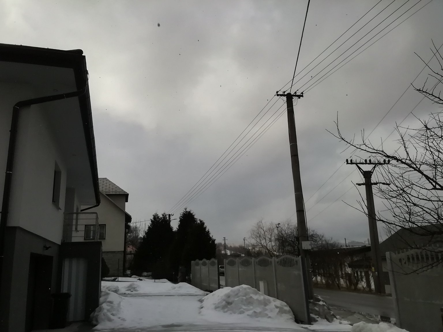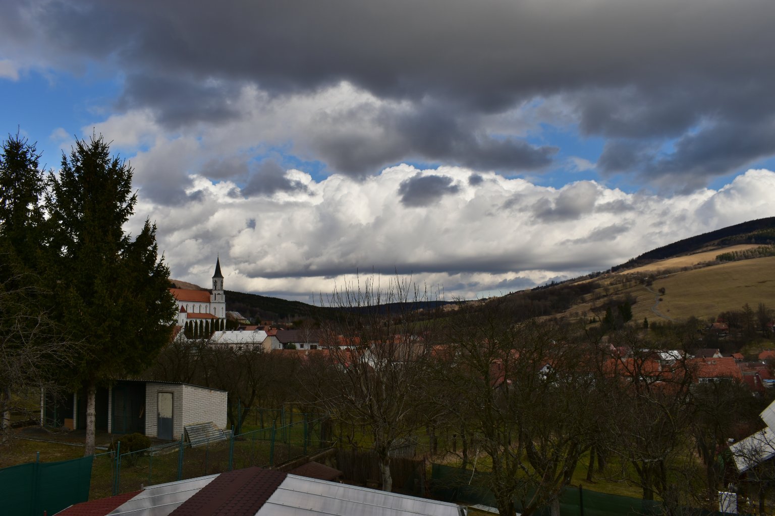 Právě přechází velmi slabá přeháňka, spadlo pár krupek. V SV směru na Lopeník silnější přeháňka (viz. foto).