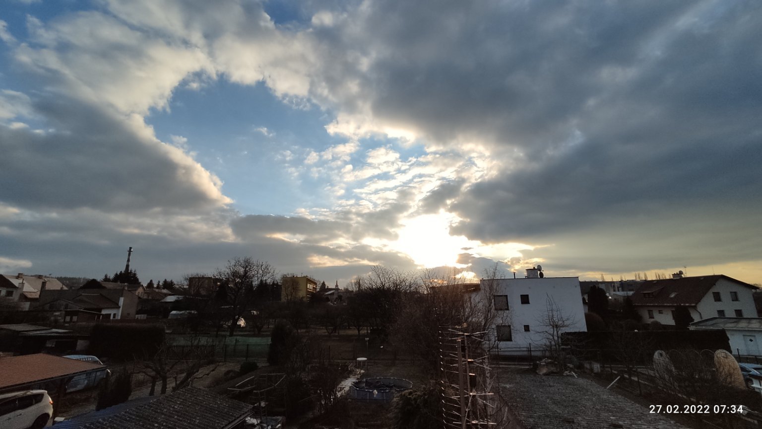 Oblačnost 0,0%, tlak 1034,03hPa→, poc.teplota -9,23°C, tepl.ros.bodu -7,04°C, rel.vlhkost 79,9%, abs.vlhkost 2,89g/m3, mírný V vítr 79° 11,988km/hod.(3 Bft), průměrná teplota za uplynulých 24 hodin -0,88°C(min.-5,91°C, max.5,38°C), délka dne 10:53:09.