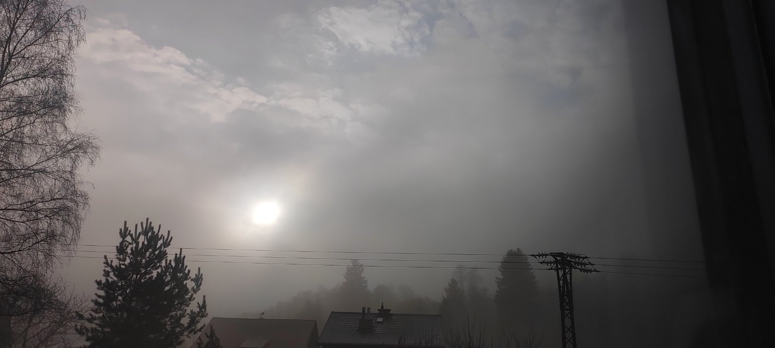 Oblačno až skoro zamračené, slabunka snehová prehánka