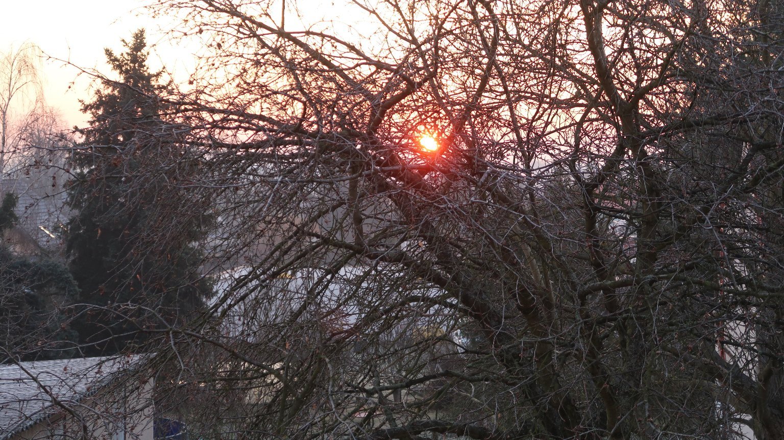 -8,4°C, Jasno, Sníh: 0.cm. Slunce pravě vylezlo.