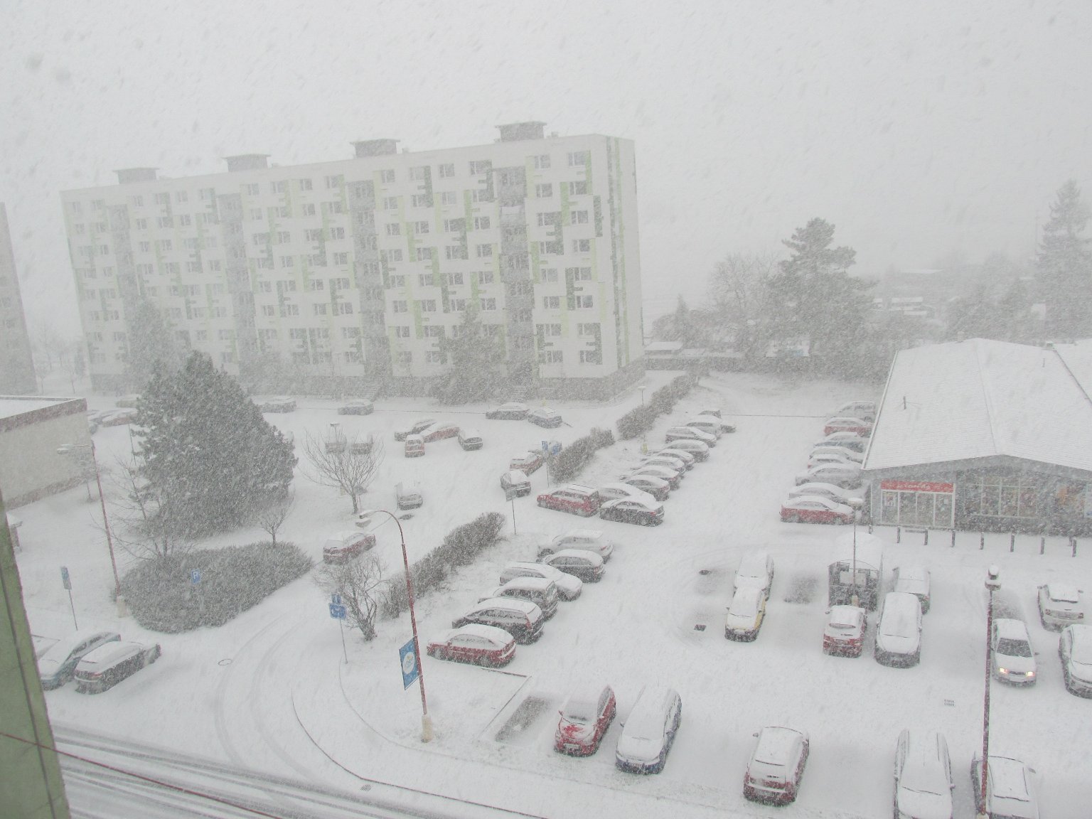 Zataženo, poletuje sníh. Ranní přeháňka se nám bohužel vyhla, takže sucho pokračuje.