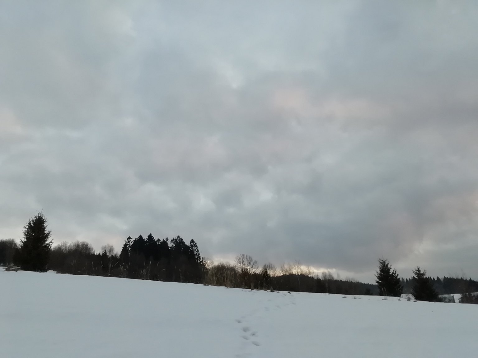 -°C, Oblačno, Sníh: nesouvislý. Slunce zapadlo.
