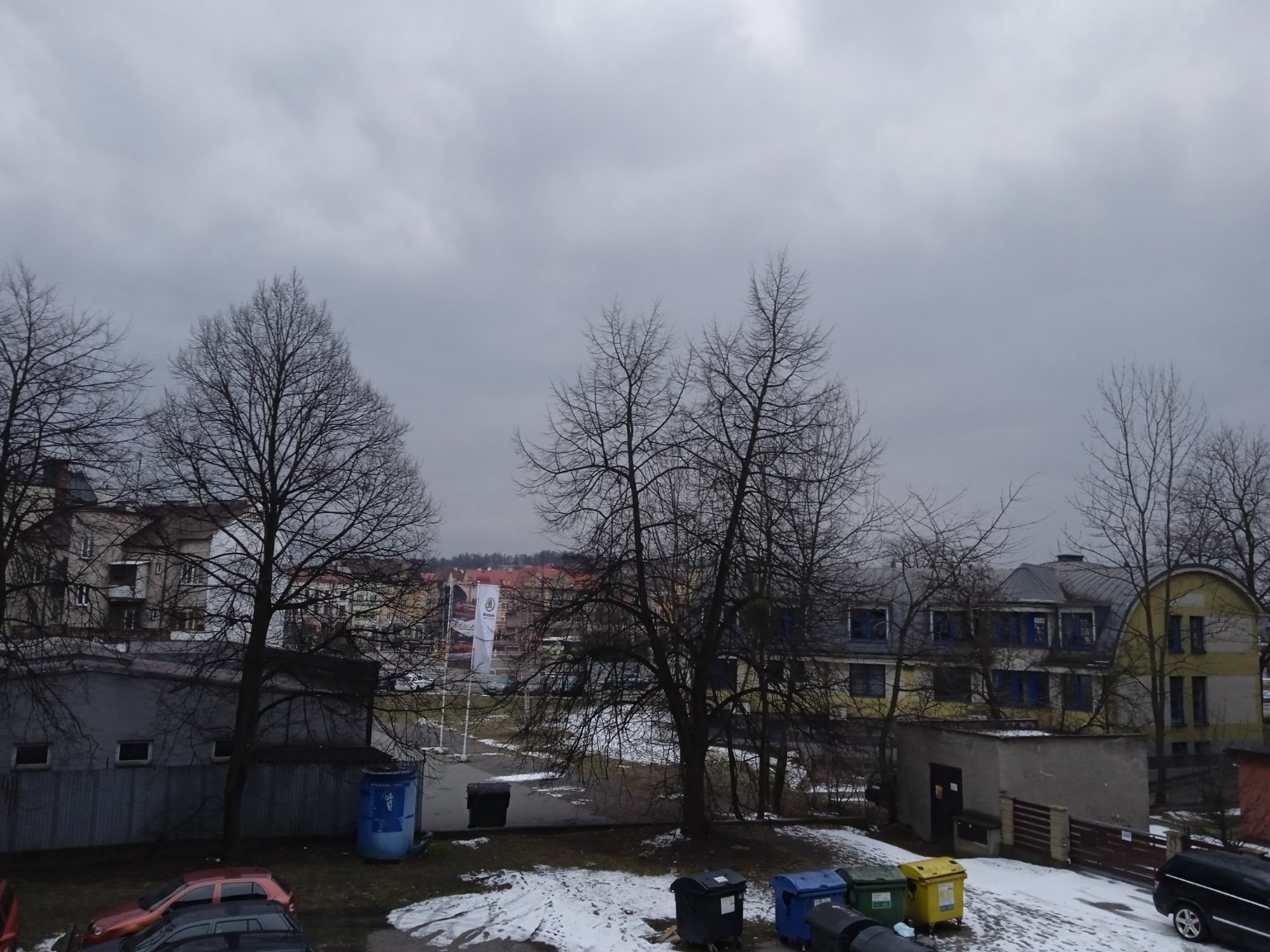 -°C, Zataženo, Sníh: nesouvislý. Dnes slunce vůbec nevysvitlo...