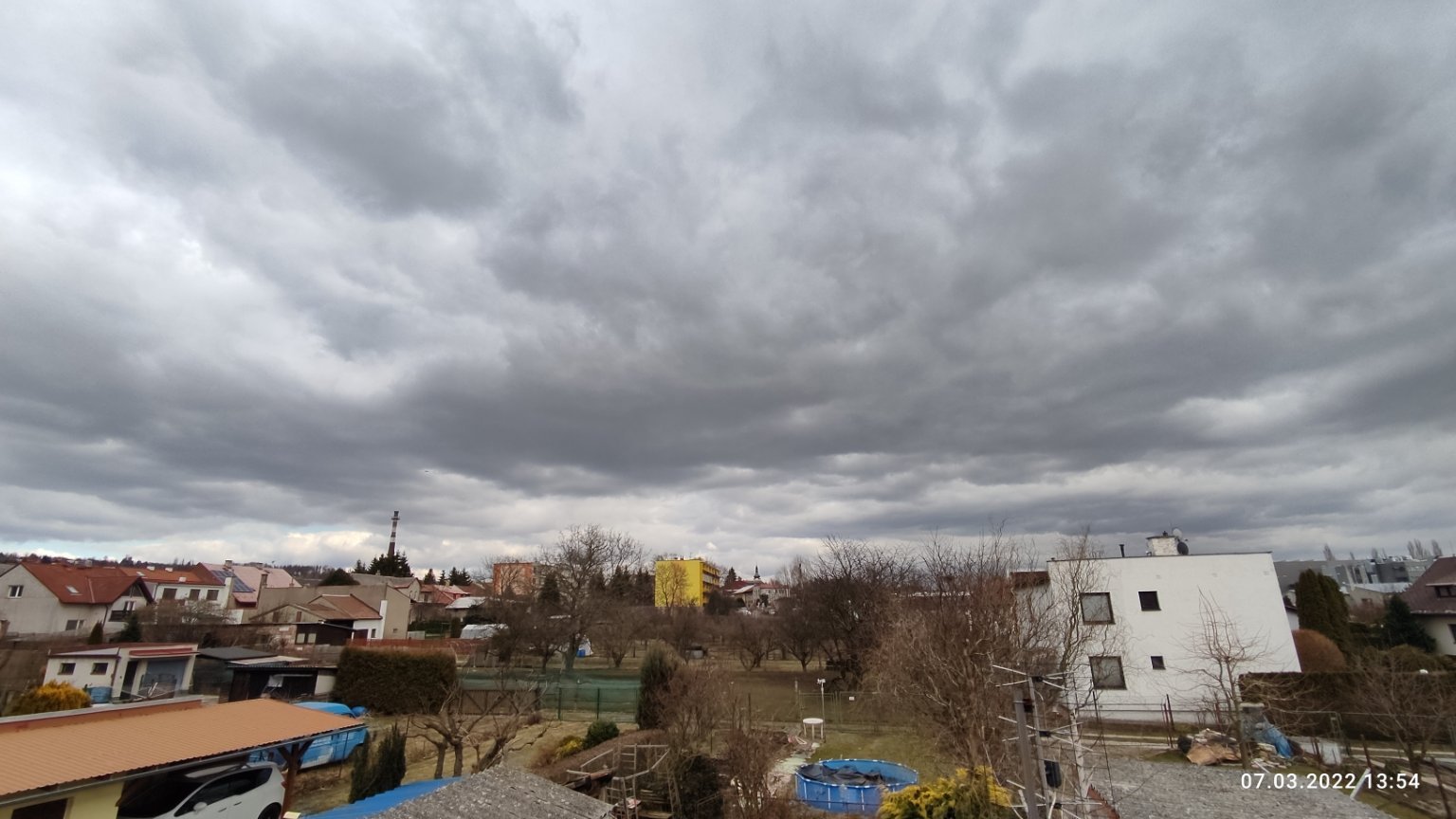 ráno, -5°C,, skoro zataženo a občas poletuje sníh,, mírný nárazový vítr