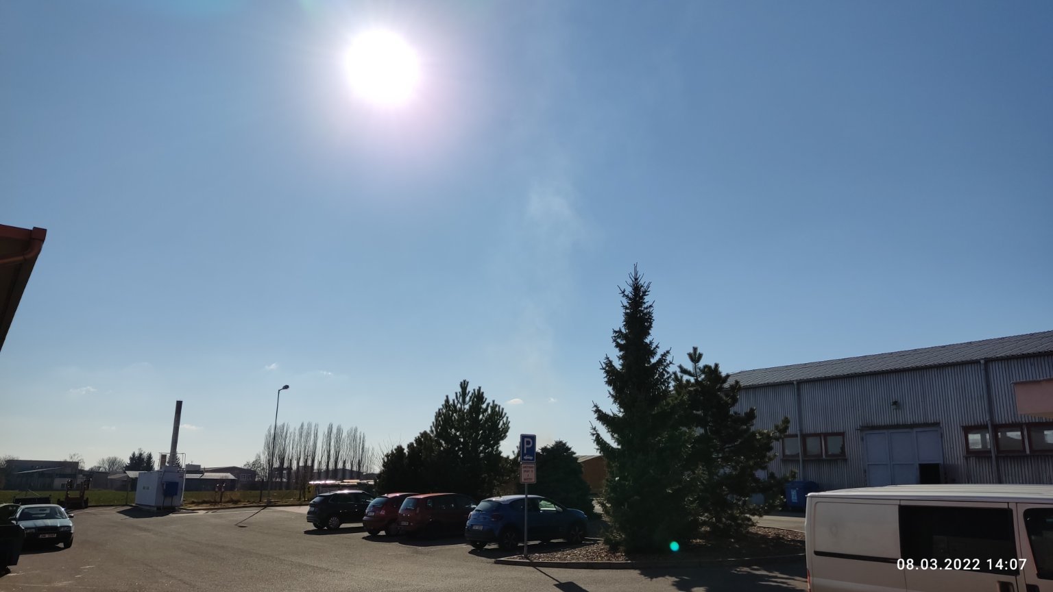 2,8°C, Polojasno, Sníh: nesouvislý. Konečně se obloha protrhává! Ale slabší opar stále převládá...