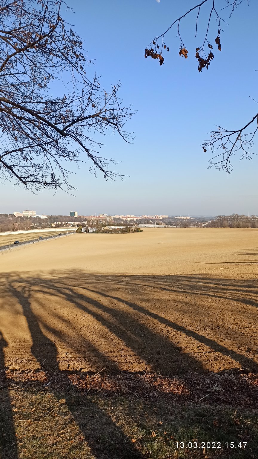 Teplo, vlhkost 19%. Pohled na Hleďsebi.