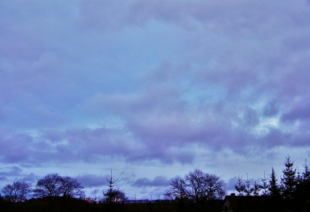 Klidno,tlak 1028hPa,obloha při západu Slunce
