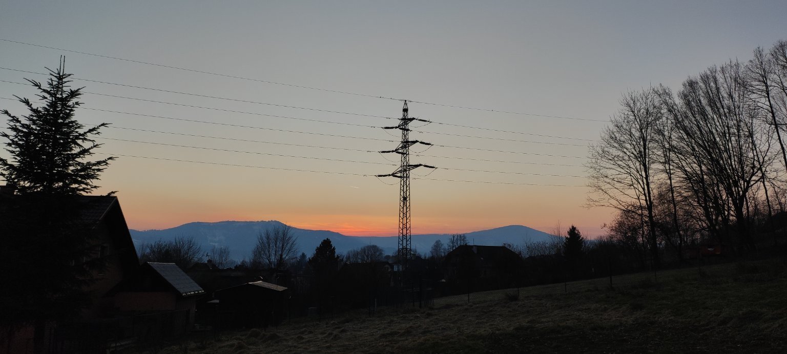 Stále se obzor barví do pískově oranžové barvy, dohlednost 15km