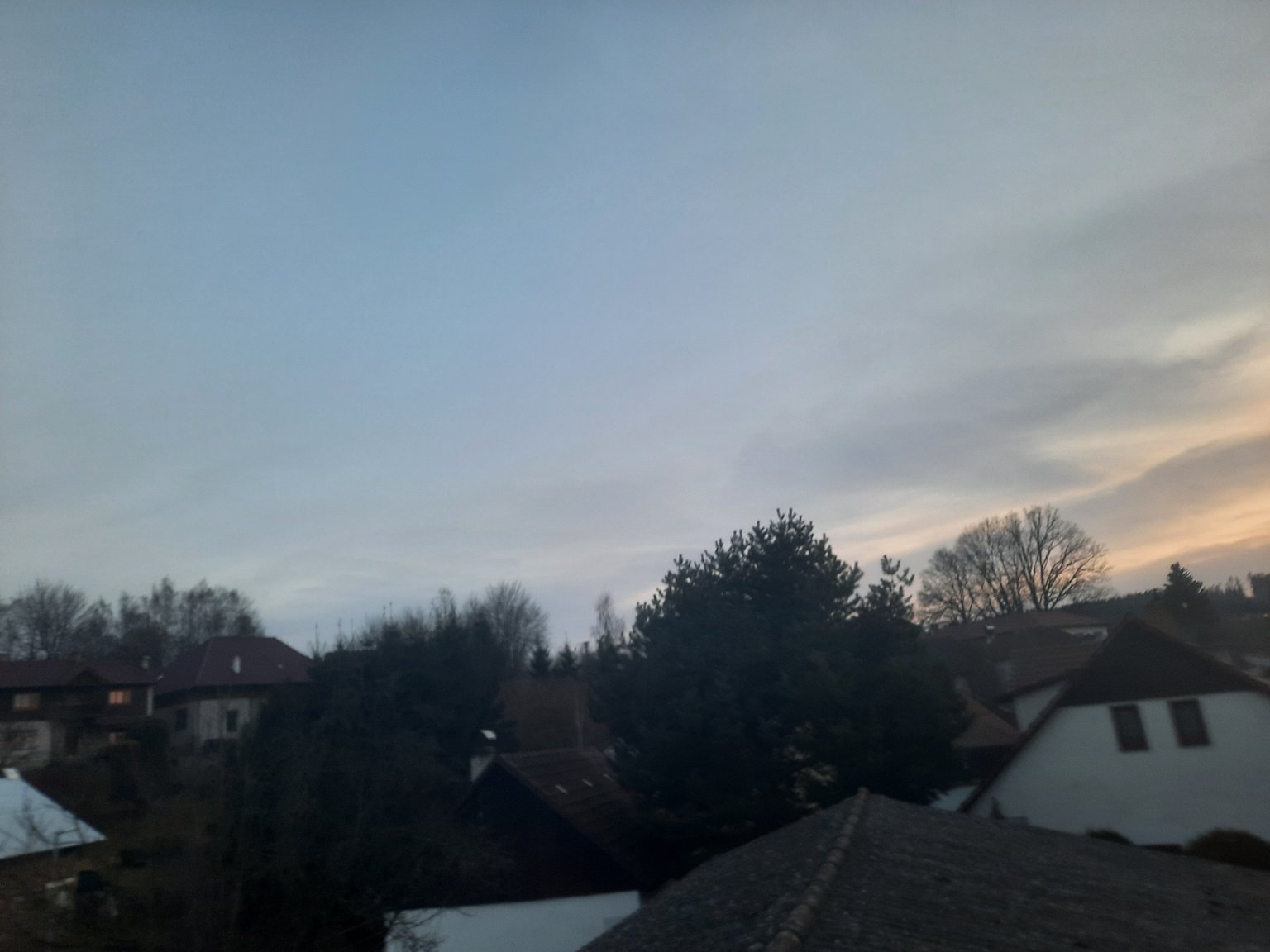 Dnes bylo díky čerstvému jihovýchodnímu větru pocitově docea chladno. Tlak: 1040hPa. Ráno teplota klesla na -4°C.