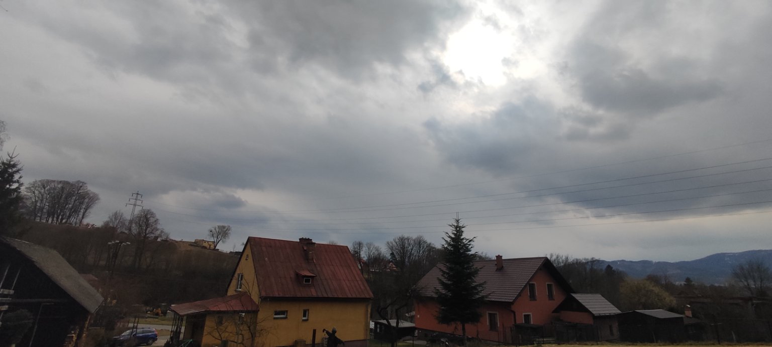 Slabě prší a pomalu to zesiluje. Vítr vane slabý.