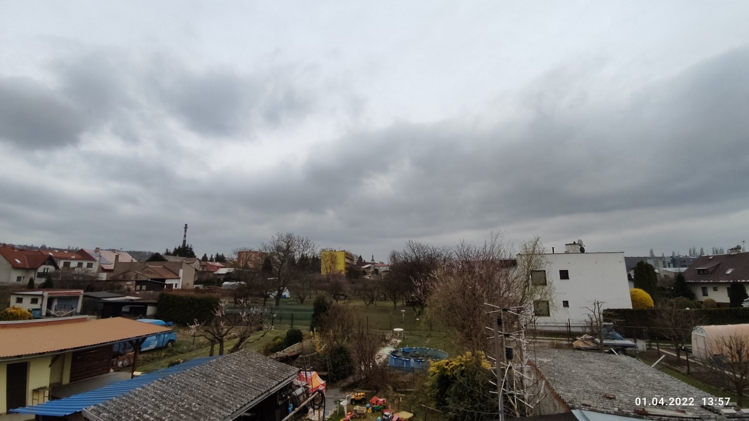 0,9°C, Velmi slabé sněžení. Sněhová pokrývka úplně roztála, pouze na střechách je ještě něco.