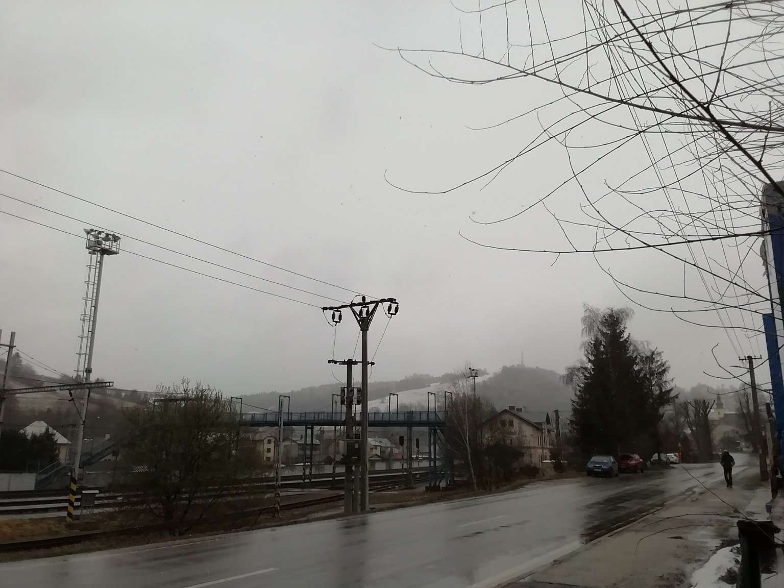 Je zataženo a popadávájí tu vločky. Vítr vane čerstvý.