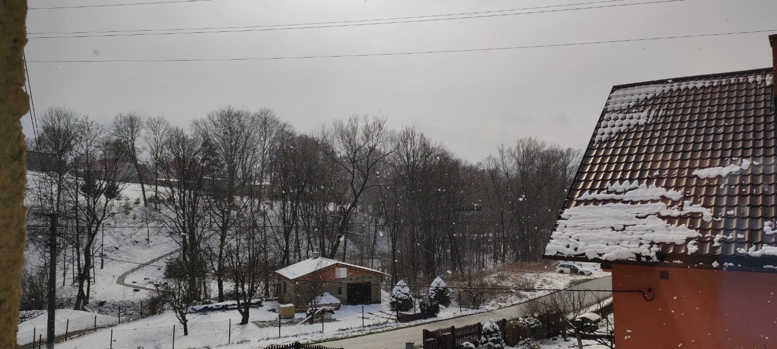 Většinou je skoro zataženo a poletuje sníh. Vítr vane mírný.