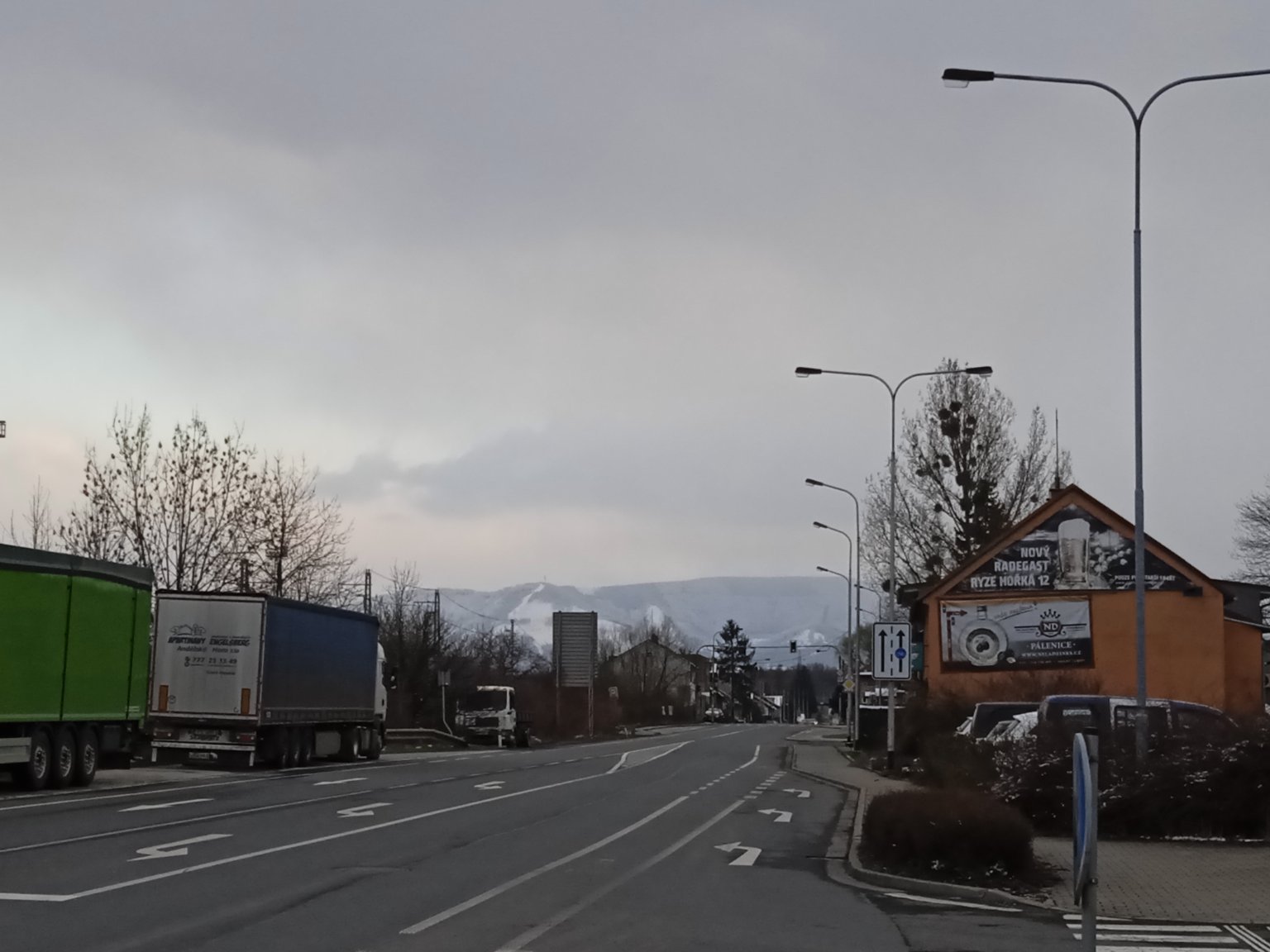 Skoro zamračené, slabé sneženie