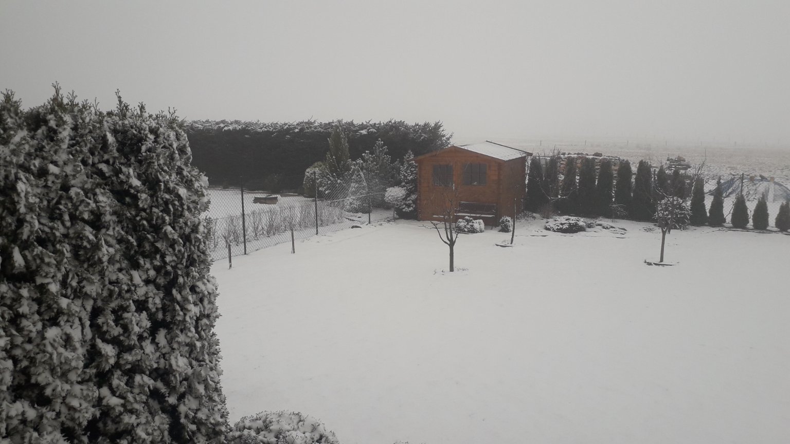 Zamračené, slabé až mierne sneženie, už sneh do 9 cm, už ubúda..