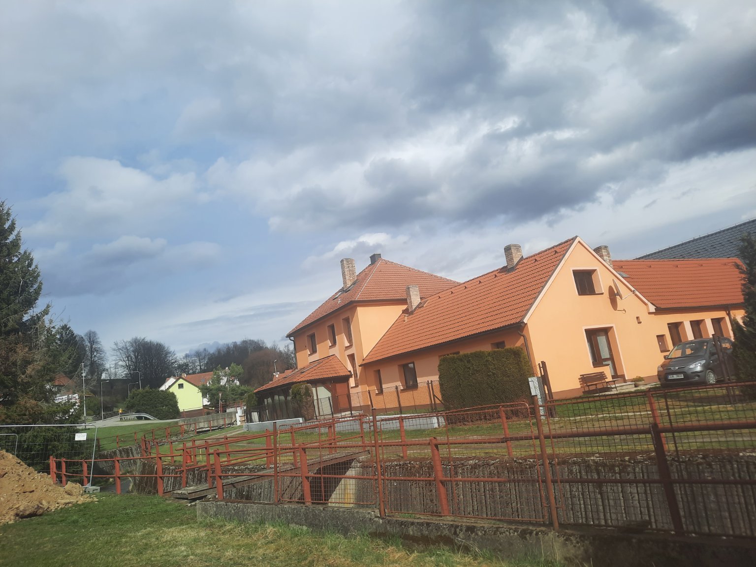 Je zataženo a začalo pršet. Vítr vane čerstvý s nárazy.
