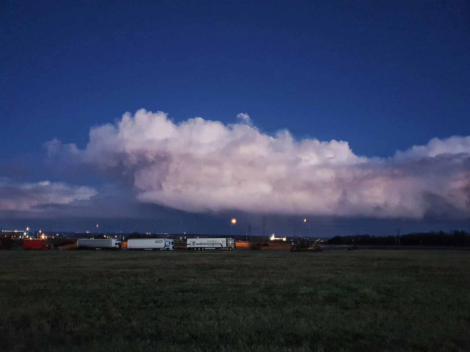 Aktuálně bouřka, dvakrát zahřmělo a liják se zdá být silnější než ukazuje radar. Přes závoje deště je ale matně viditelný Měsíc.