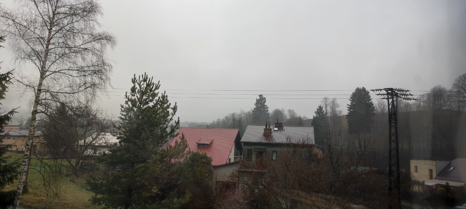 Aktuálně převažuje většinou zataženo a slabě sněží a fouká většinou vánek